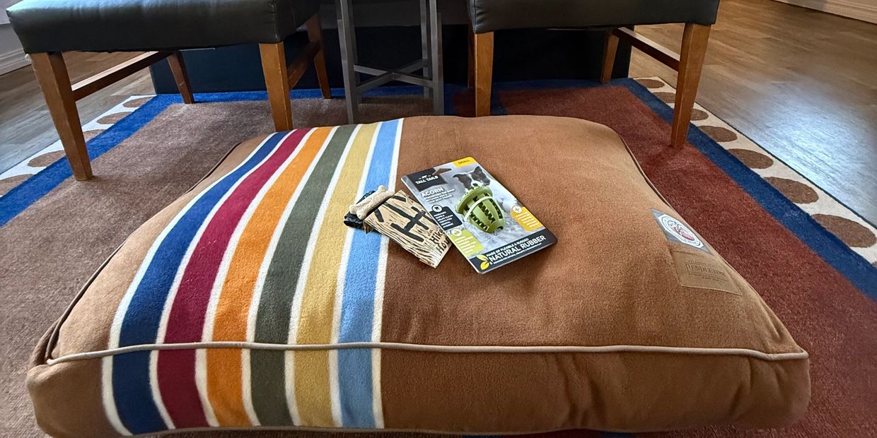 You are on vacation, why shouldn't your best friend have fun too? Relax them with CBD calming chews and a good night's sleep on a cushy bed by Pendleton. Finally, entertain them with a peanut butter-filled toy (Pinecone toy for medium-large dogs or Acorn toy for small). The toy goes home with you!